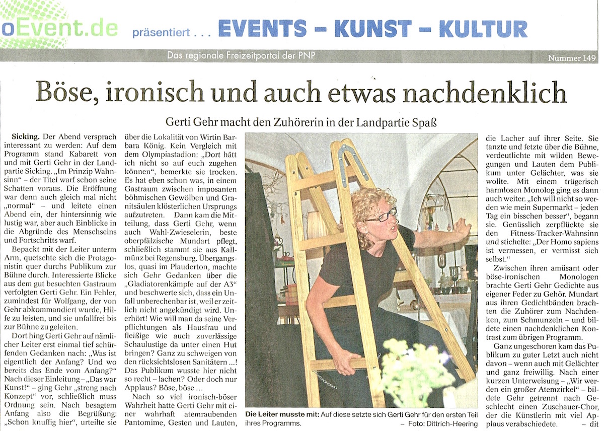Die Kabarettistin Gerti Gehr ist ein Kallmünzer Gewächs.